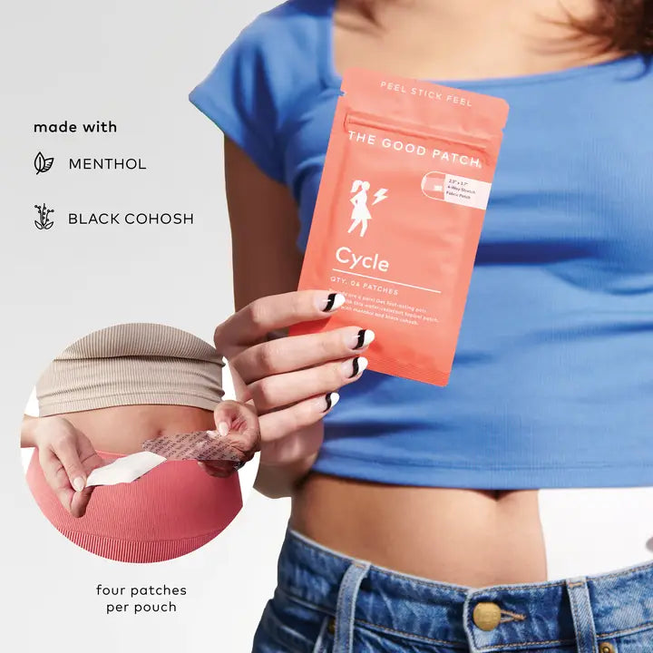 A dermal wellness patch for that time of the month. Infused with Menthol (5%) and Black Cohosh. This patch offers targeted temporary relief of minor aches and pains associated with that time of the month. Made with 4-way stretch, water-resistant fabric technology, for relief without interfering with your day.