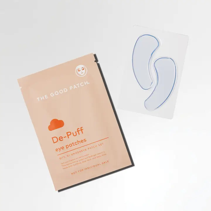 Say goodbye to puffy eyes with DE-PUFF under eye patches from The Good Patch. Infused with Caffeine, Aloe Vera, and Gotu Kola, these cooling hydrogel eye patches are perfect for reducing the appearance of under eye bags, no matter how late you stayed out last night. Feel good and look good with The Good Patch! (Pro Tip: Pair this patch set with our Rescue wearable wellness patches to bounce back from a night out.)