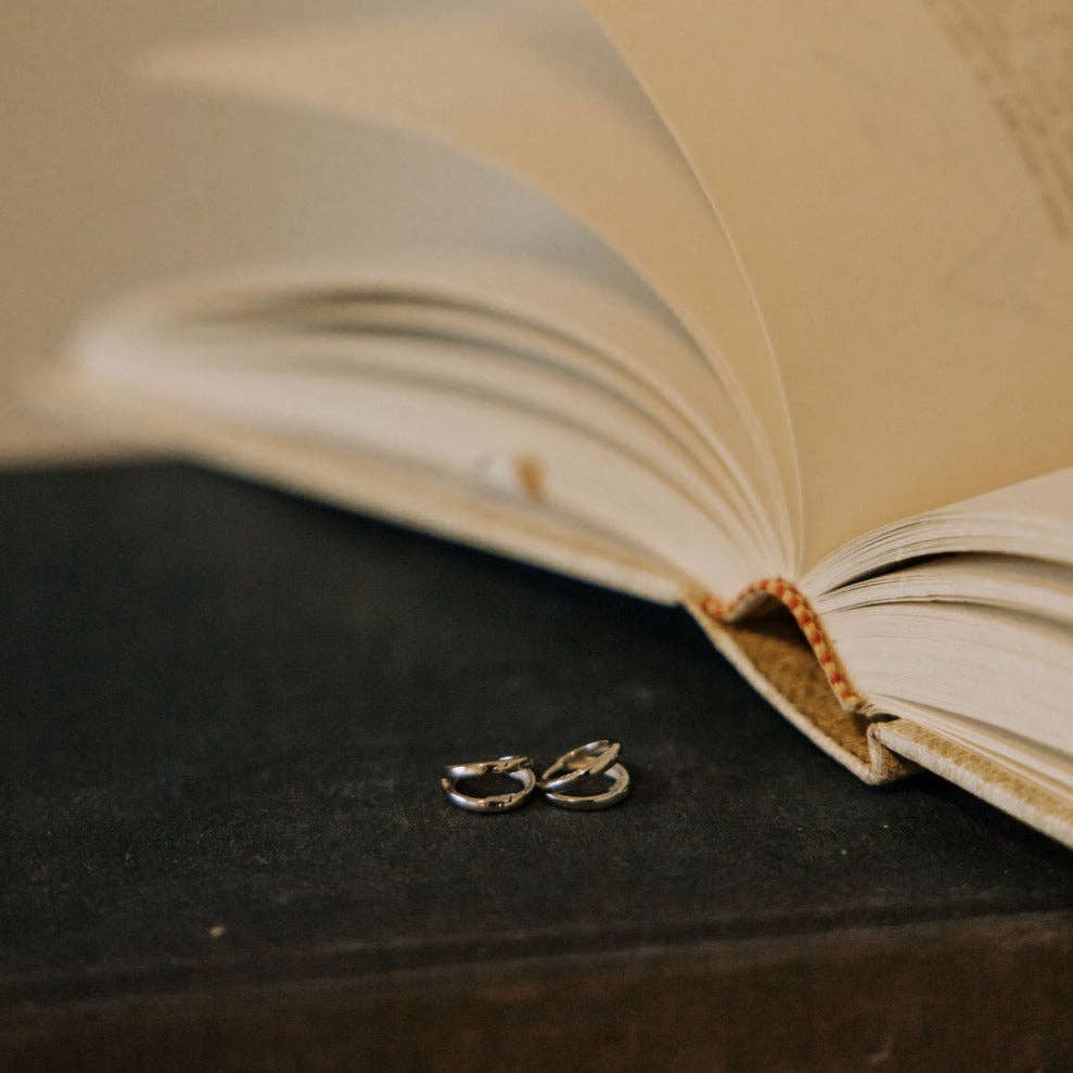 The Sadie Double Band Hoops are made of high quality sterling silver or gold vermeil metal and are hypoallergenic and good for sensitive ears. They have a cute, thick double band and are a timeless accessory that goes with anything! The exterior diameter on these hoops is 11 mm. Mauve Jewelry Co.
