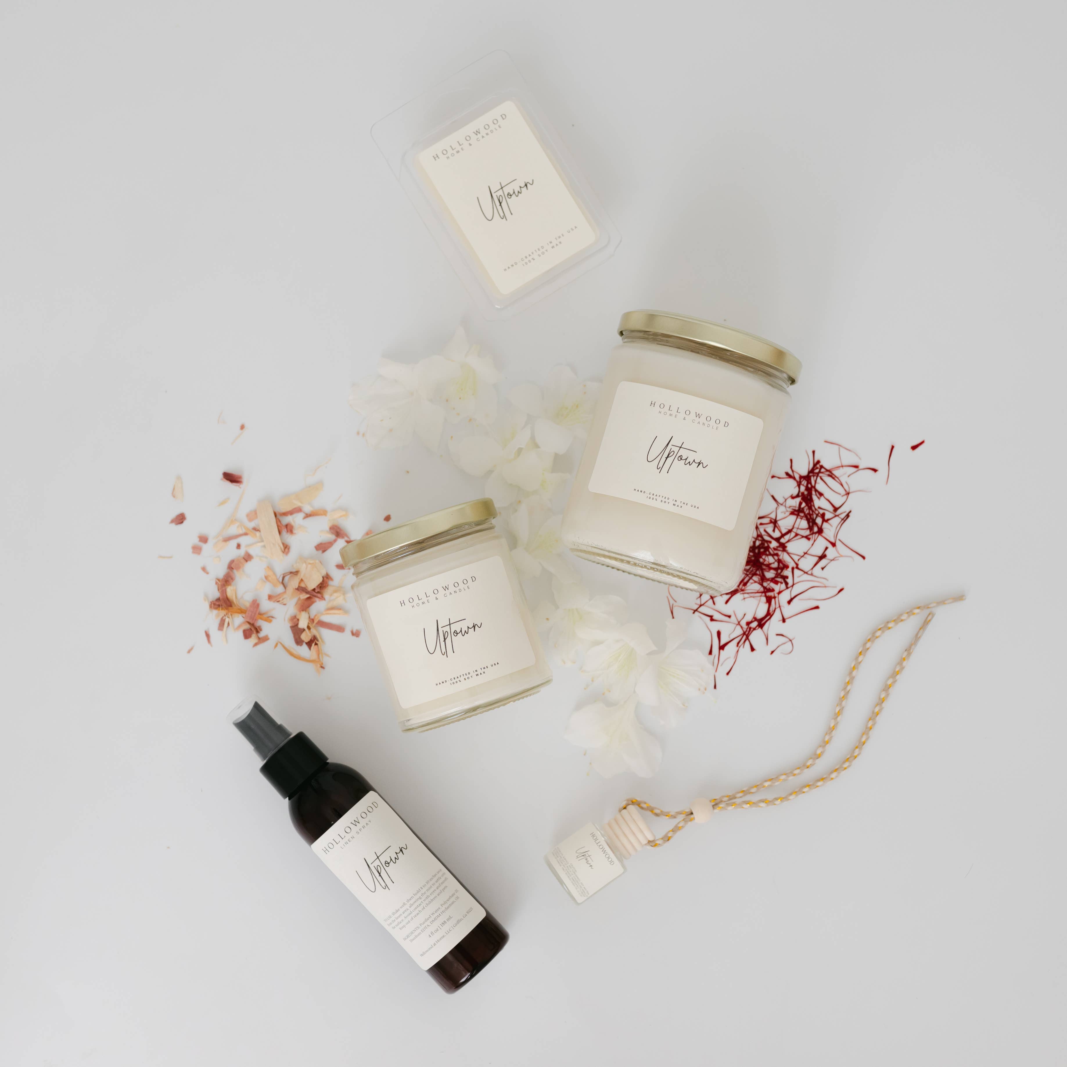 Elevate your senses with the invigorating fragrance of breezy jasmine and radiant saffron, perfectly blended with the mineral notes of ambergris and the woody essence of freshly-cut cedar. This exquisite scent is inspired by the luxurious Baccarat Rouge 540. Wax: 100% Soy | Vegan | Non-GMO Wick: 100% Cotton | Lead and Zinc Free Oil: Premium Fragrance Oil Made in the USA Poured in Griffin, Ga To prevent fire and serious injury: Always trim wick to 1/4 inch before lighting and keep debris out of the wax pool. Never burn longer than 2-hour intervals. Set the candle on a heat-resistant surface and avoid drafts. Always burn within sight and extinguish before leaving the room. Don’t burn near things that catch fire. Keep away from children and pets. Don’t extinguish with water. Always let the wax harden before relighting, touching, or moving.