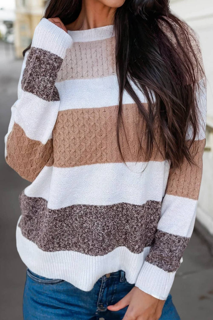 Texture Striped Color Block Loose Sweater