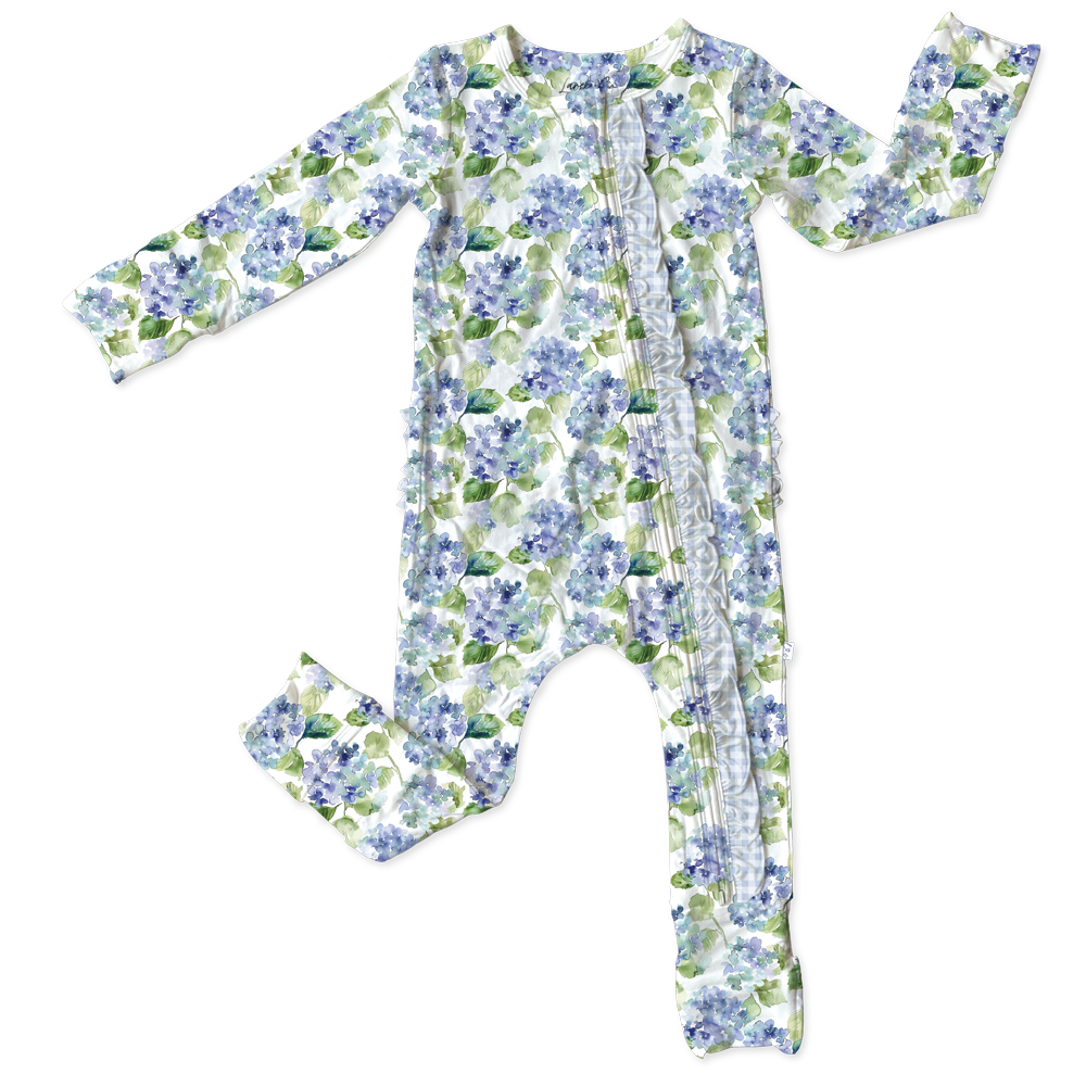 Laree + Co.'s luxuriously soft ruffle bamboo one-piece convertible footie with three-way zippers is a game changer. They make diaper changes a breeze and are also perfect for our little warriors with tubes and wires!