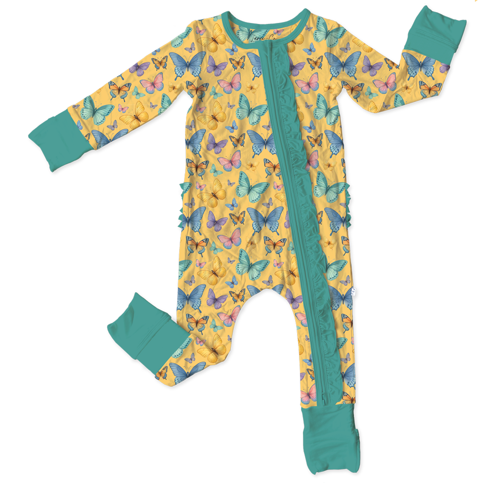 Katherine Butterflies Bamboo Ruffle Convertible Footie (Pre-Order)