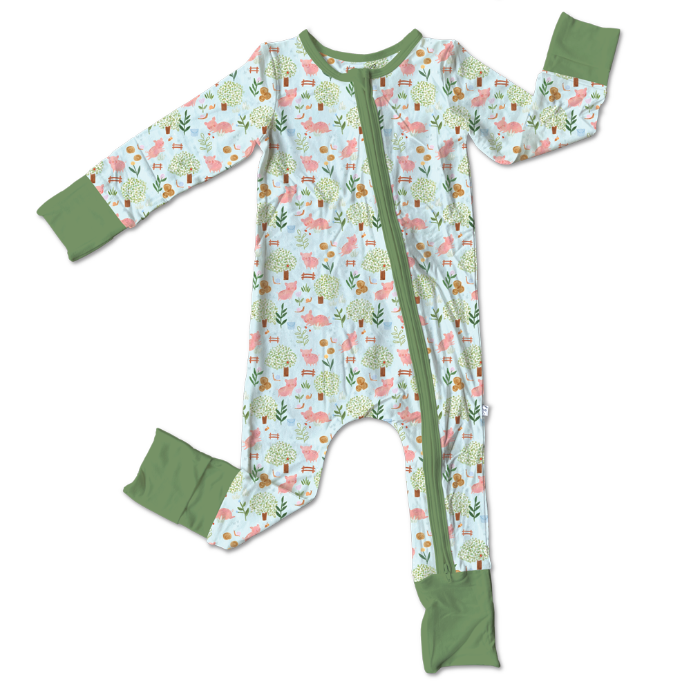 Laree + Co.'s luxuriously soft bamboo one-piece convertible footie with three-way zippers is a game changer. They make diaper changes a breeze and are also perfect for our little warriors with tubes and wires!