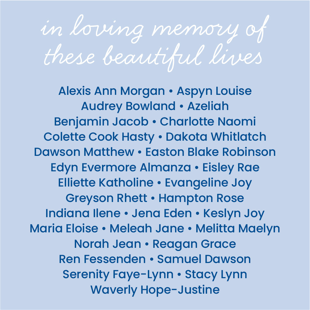 When you wear it, you’re helping keep their names alive and showing love and support to the families who carry them with them every single day. Every name on the back represents a real story, a real life, and a love that never fades.