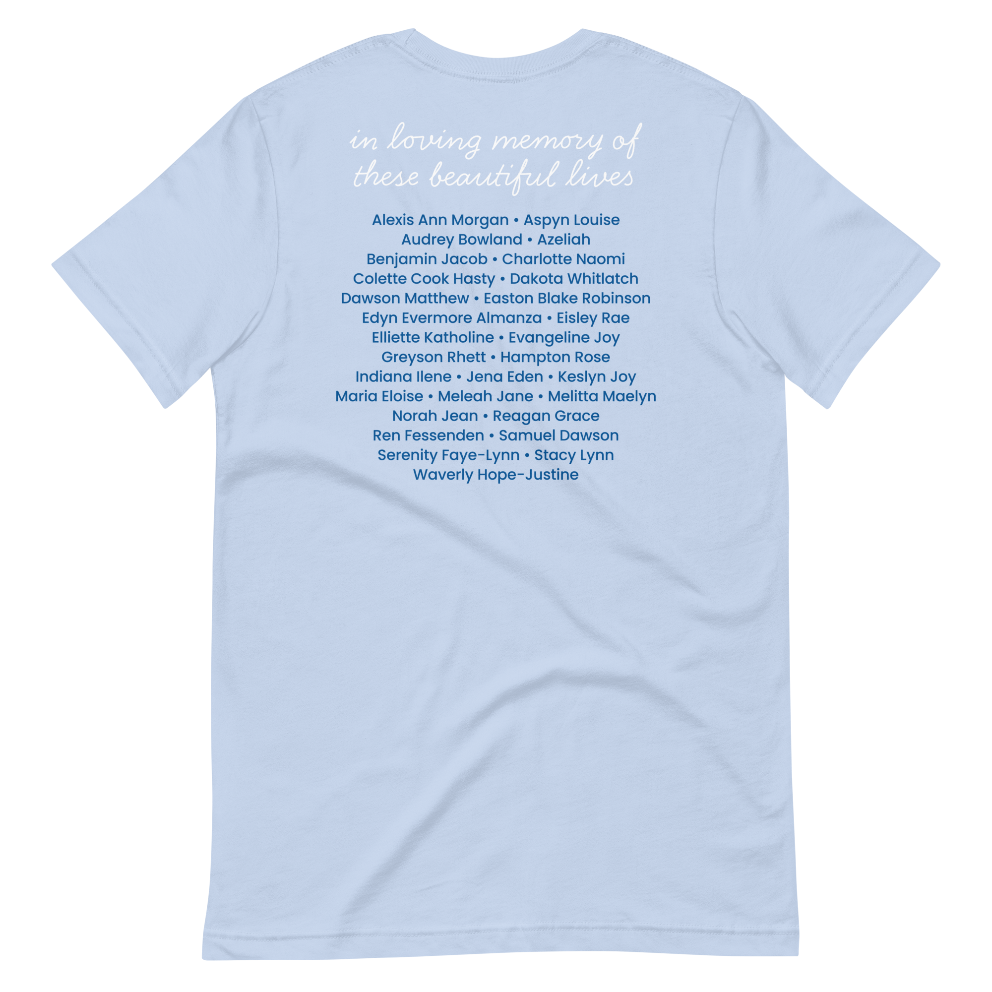 The Angel Tee is part of our awareness collection created to honor the precious little lives who have become angels, no matter their diagnosis or journey. Each shirt is designed to remember, celebrate, and share the stories of children who left a lasting imprint on the hearts of their families and communities.