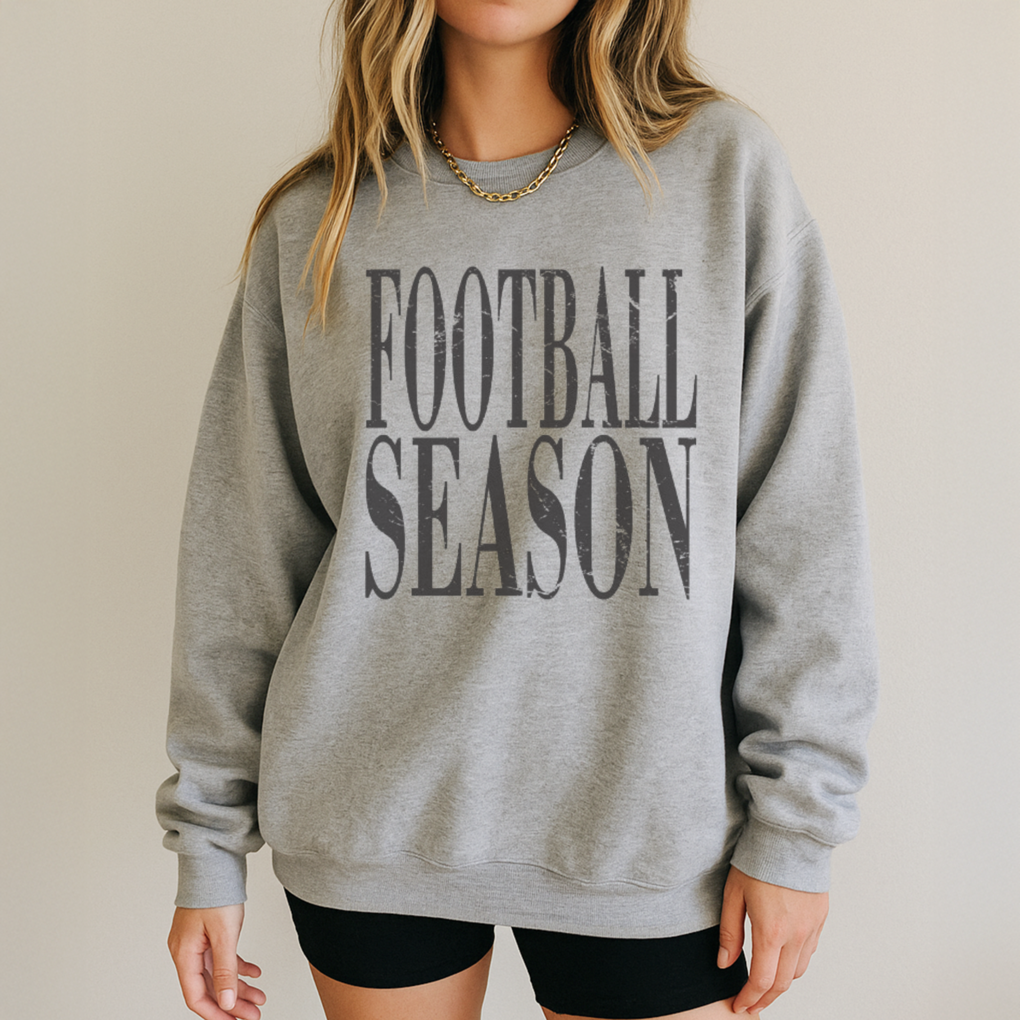 Get ready to cheer all fall long in our Football Season Crewneck Sweatshirt. With bold, distressed lettering across the chest, this cozy pullover is the perfect staple for game days, tailgates, or lounging at home while catching the big game. The relaxed unisex fit and soft cotton-blend fleece keep you warm and comfortable no matter where you’re watching from.