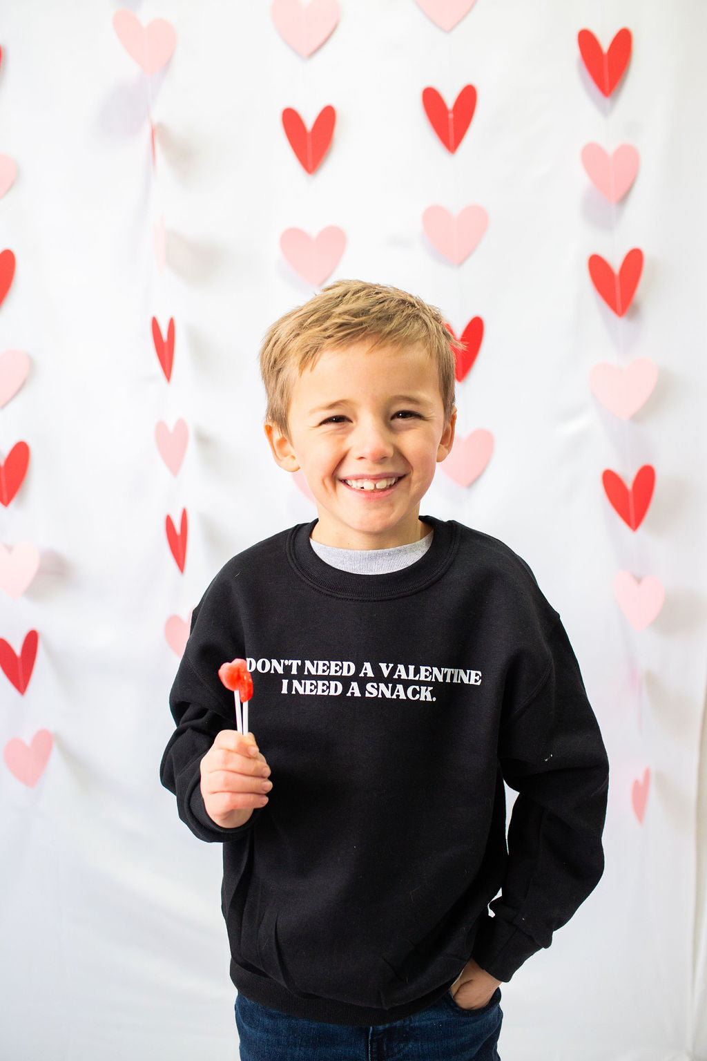 I Don't Need A Valentine, I Need A Snack (print) Youth Crewneck Sweatshirt