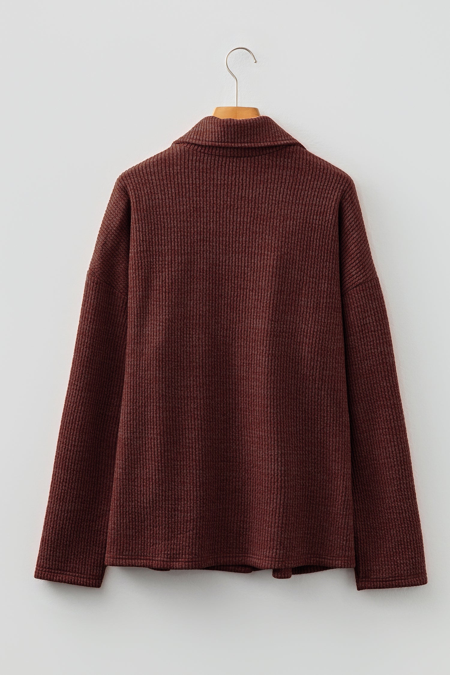Introducing your new wardrobe MVP! This shacket is the ultimate style shapeshifter—wear it buttoned up as a polished jacket or throw it open over your favorite tee for that effortlessly cool layered look. The textured knit keeps things visually interesting while the stretch fabric moves with you, no stiffness allowed. Practical pockets mean you've got somewhere to stash your essentials without sacrificing style points. Perfect for those in-between seasons when you can't decide between a sweater and a jacket, this versatile piece does the heavy lifting for your transitional wardrobe. Polyester/Viscose/Spandex