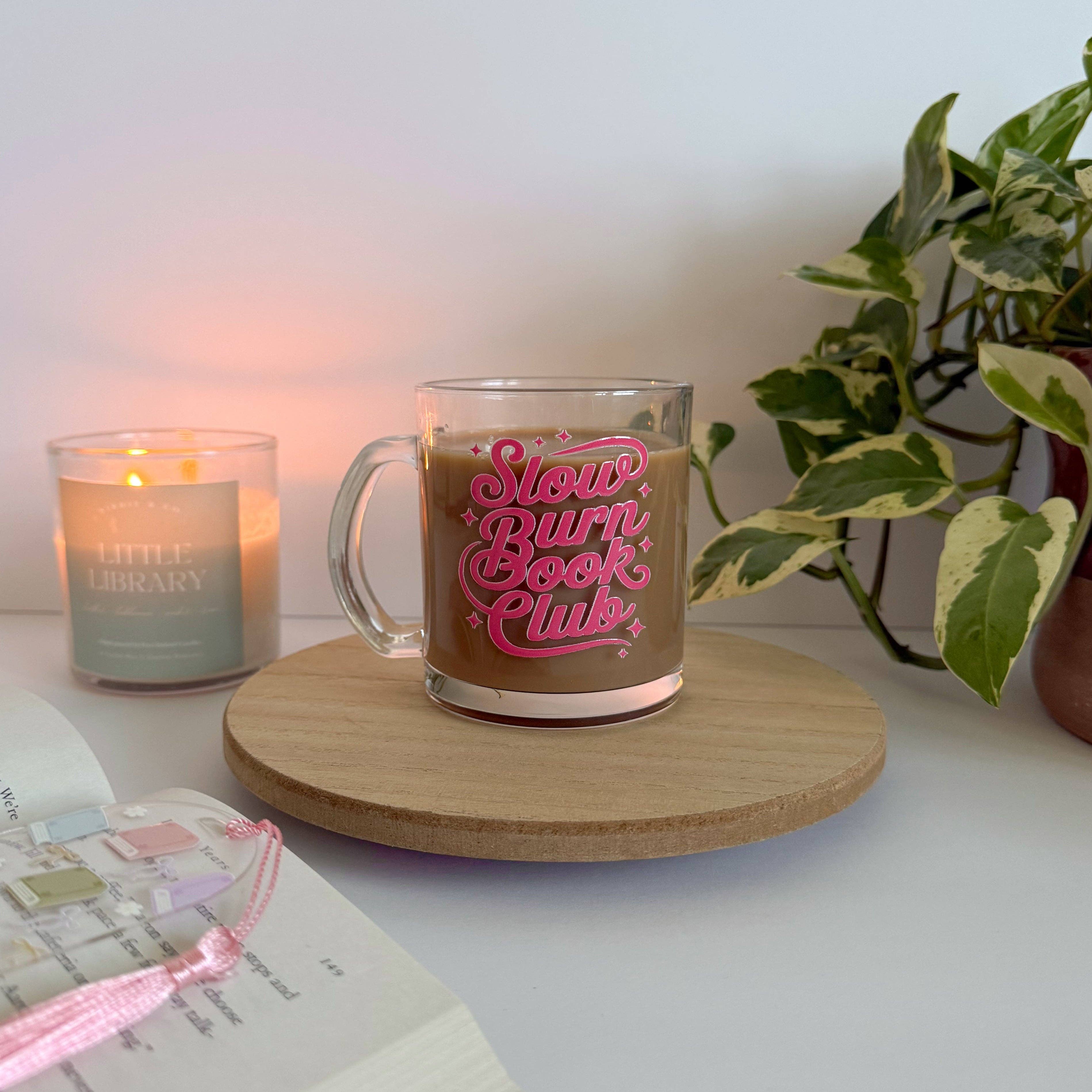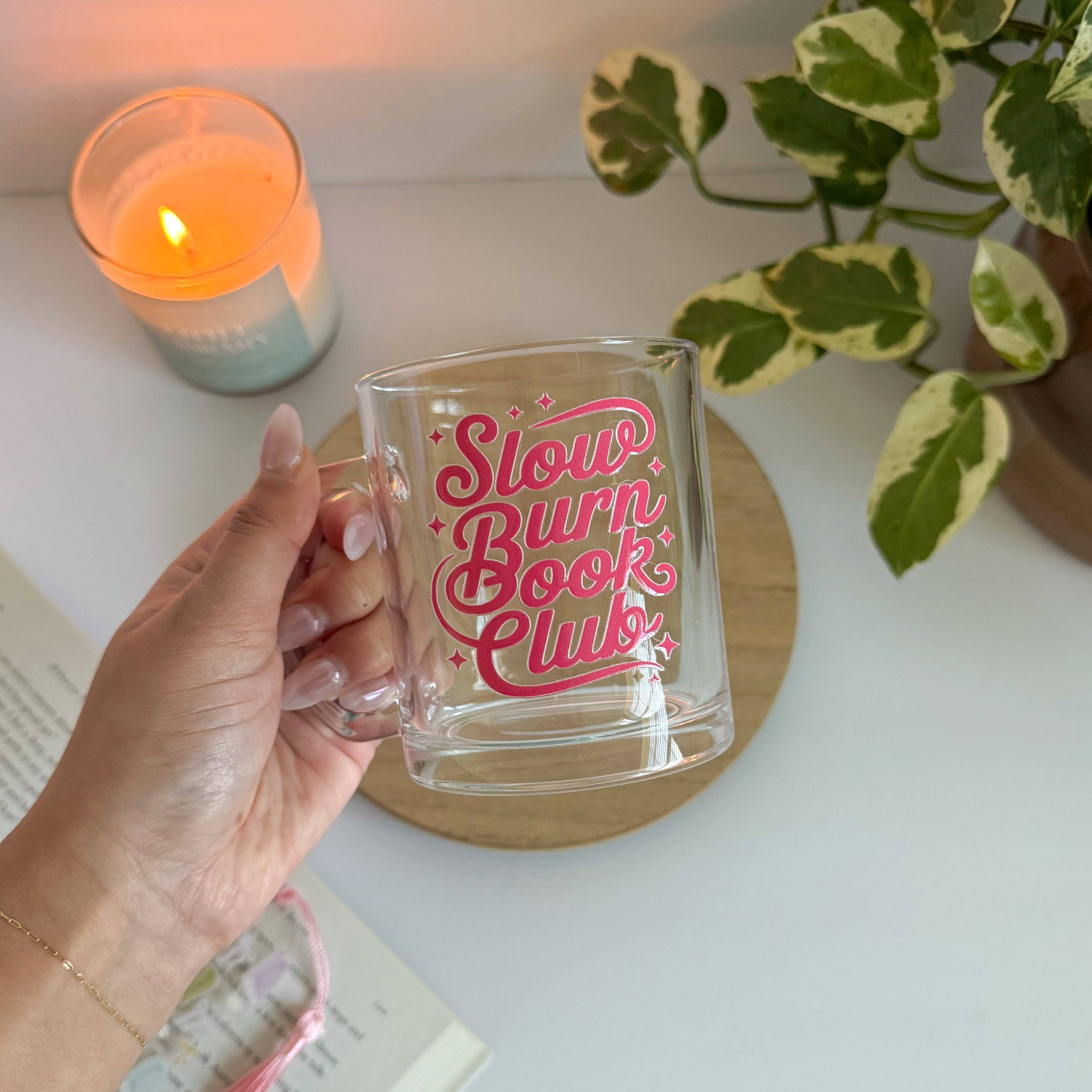 Slow Burn Book Club Bookish Glass Mug – Aesthetic Clear Mug for Coffee & Book Lovers