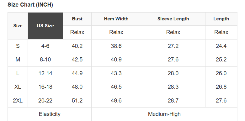 See size chart for approximate measurements.