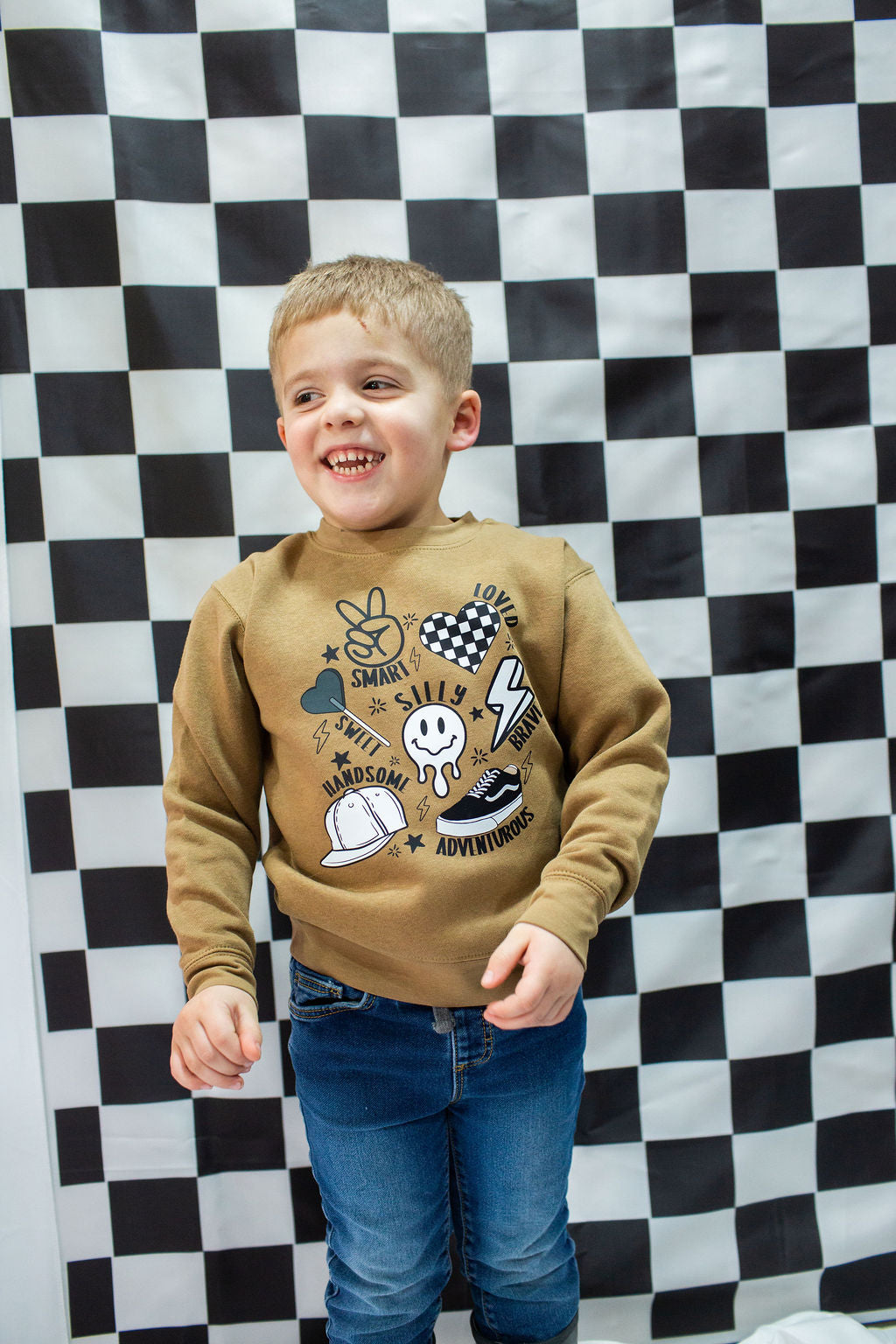 Trendy Boy Valentine Toddler Crewneck Sweatshirt