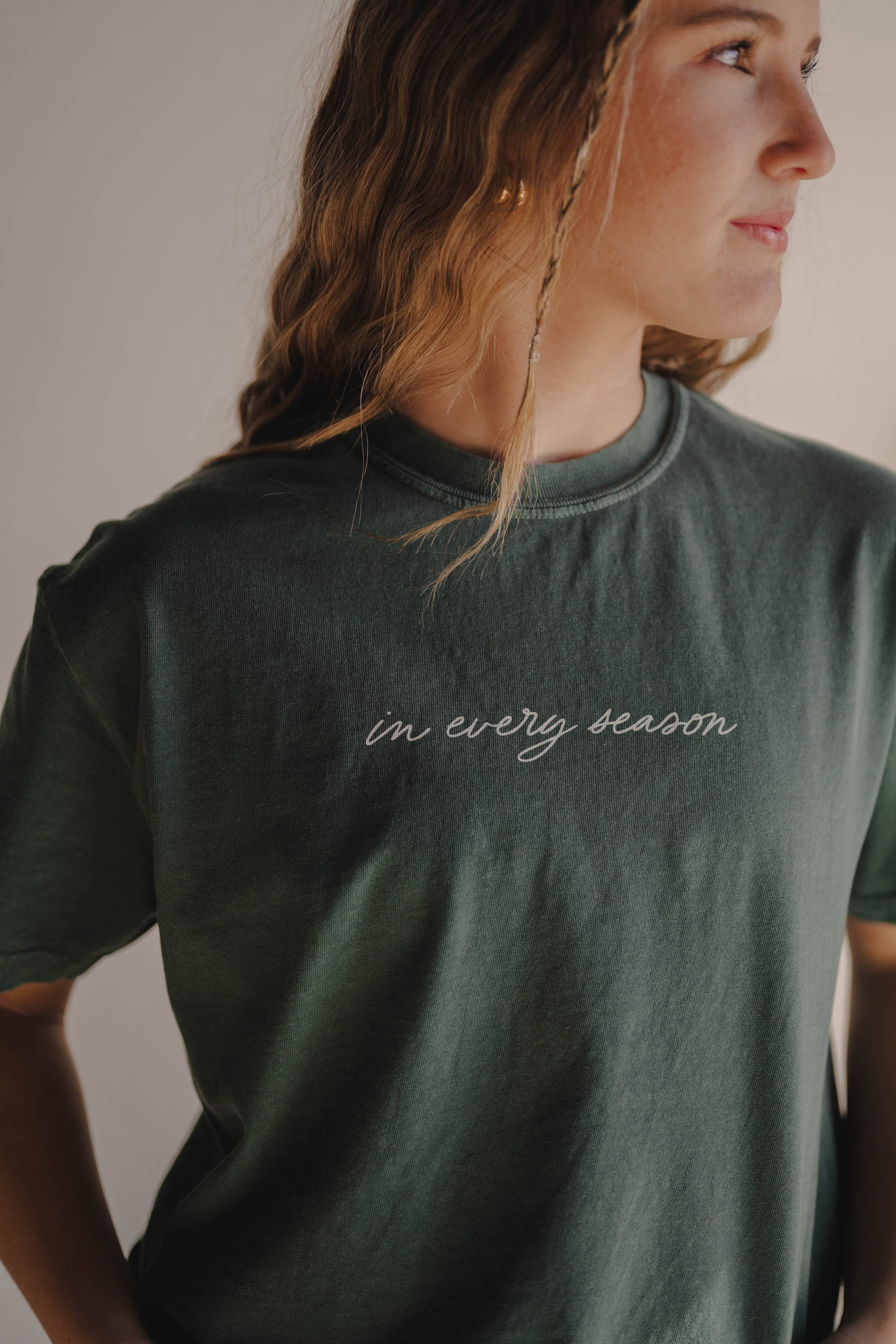 In every season, praise Him. He is with you on the mountaintop just as He is with you in the valley. He is not only the God of the good... He is also the God of the awful and everything in between. He promises that He is with you in every season and every circumstance. If you find yourself in a valley season, do not be afraid because you are not alone. Allow Him to use this time as a reminder that He goes before you and that He is your peace and comfort. The valley will not last forever, but learn to rejoice in His goodness in it just as you would on the mountain. He will lead you out, but where you are is so important. Hold fast to the truth of His word in every season and allow your confident trust in His word to carry you through every high and low.