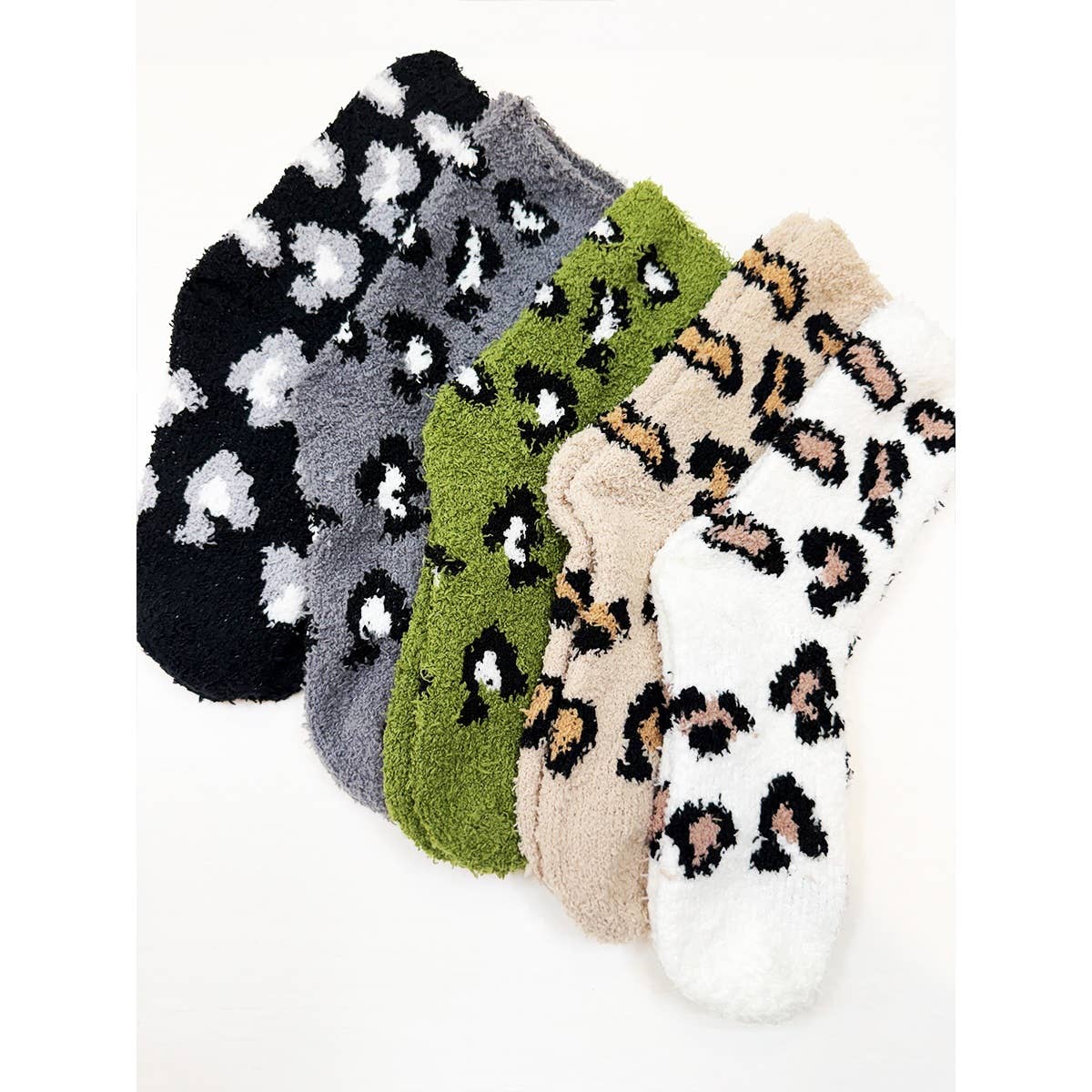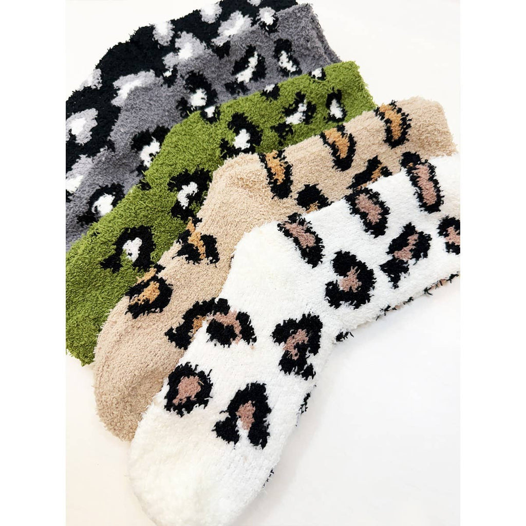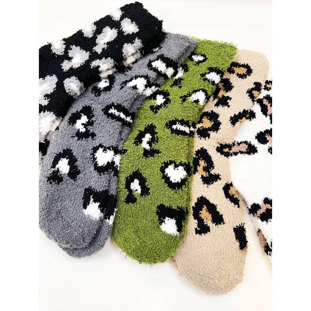 Leopard Pattern Soft Fuzzy Winter Socks -These warm fuzzy leopard socks are designed in Free sizes, Recommend size fits for US womens shoe size 5-10.