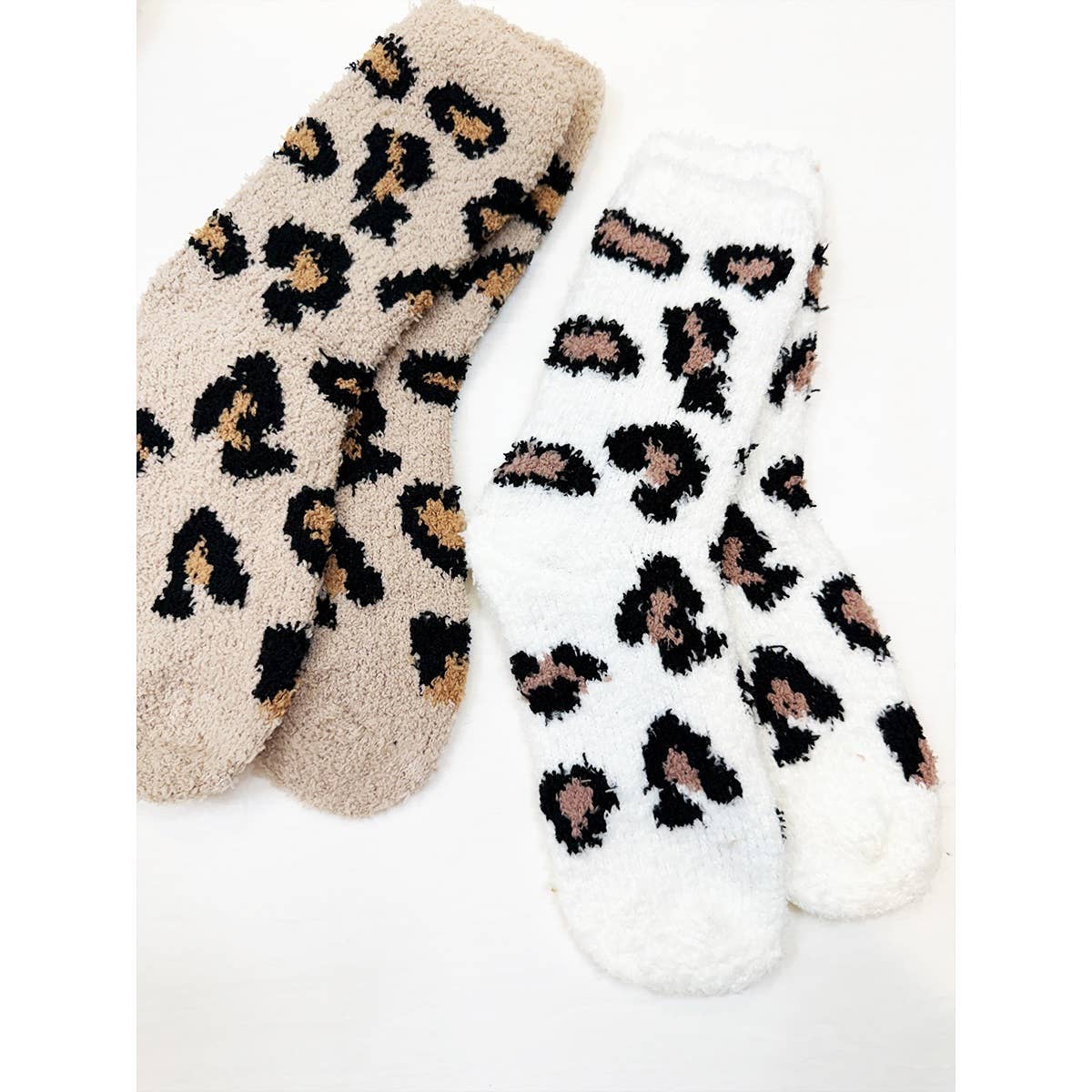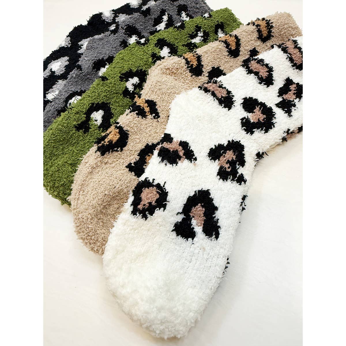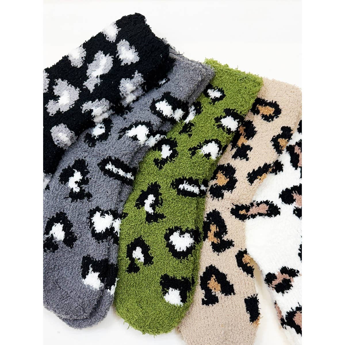 Leopard Pattern Soft Fuzzy Winter Socks -These warm fuzzy leopard socks are designed in Free sizes, Recommend size fits for US womens shoe size 5-10.