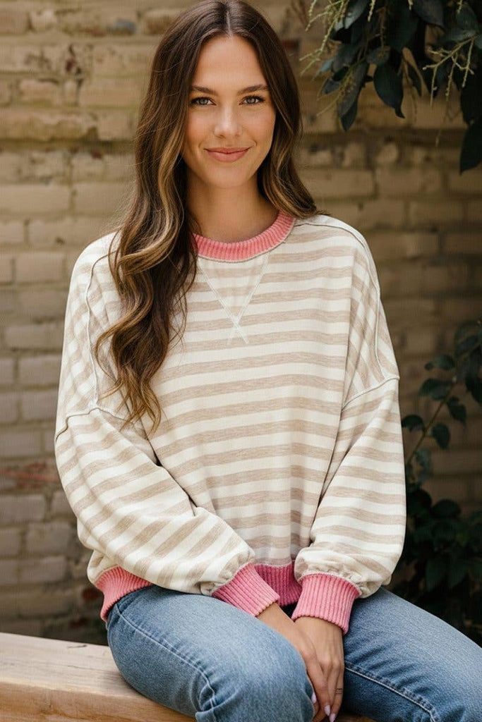 Loose Fit Stripe Long Sleeve Crewneck Sweater