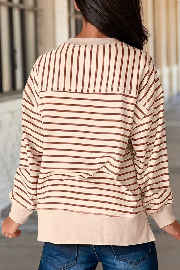 Stripe Ribbed Band Seam Detail Baggy Sweatshirt