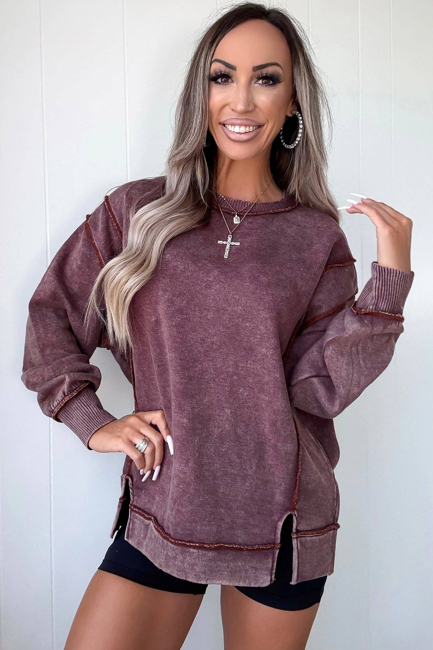 Mineral Wash Exposed Seam Sweatshirt Side Slit Casual Pullover