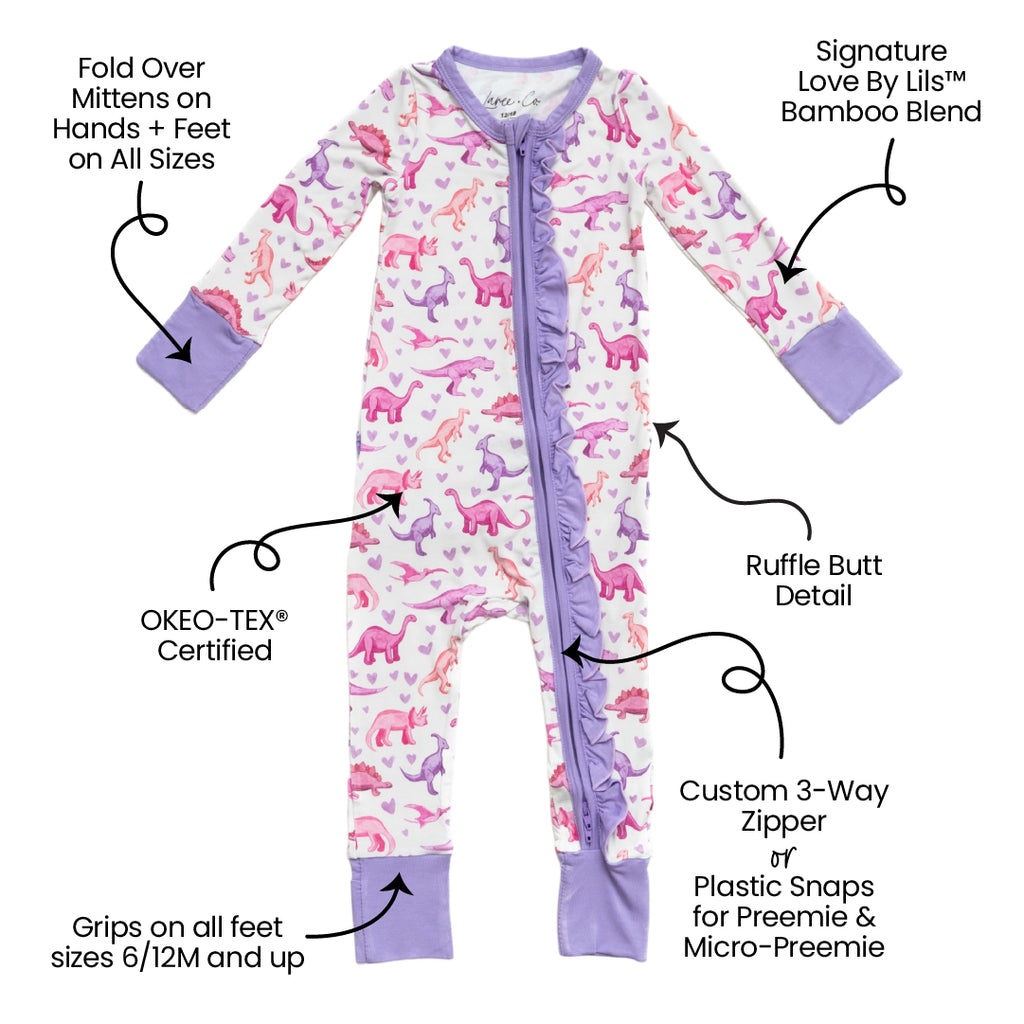Keslyn Dinosaurs Bamboo Ruffle Convertible Footie