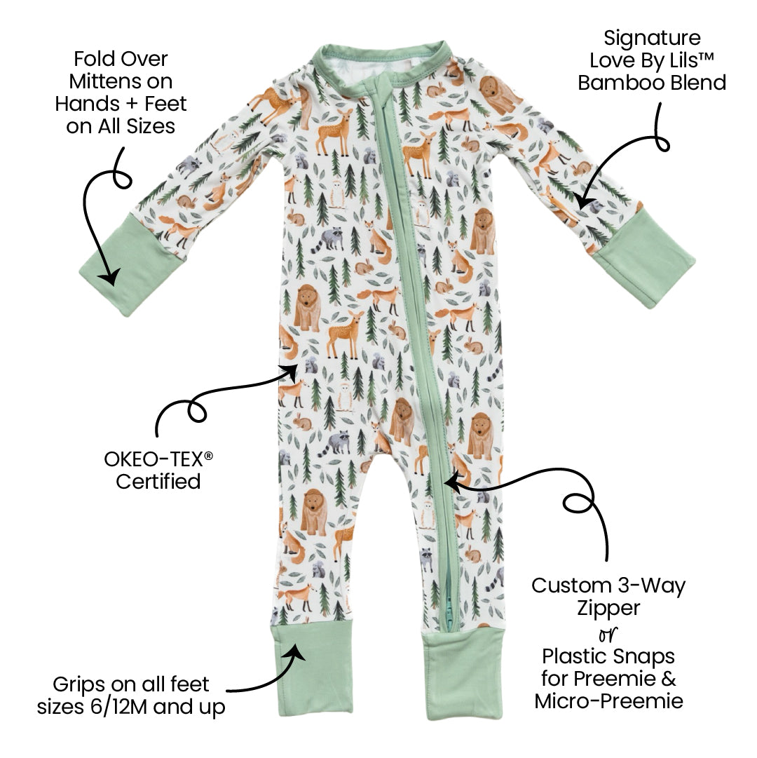 Laree + Co.'s luxuriously soft bamboo one-piece convertible footie with three-way zippers is a game changer. They make diaper changes a breeze and are also perfect for our little warriors with tubes and wires!