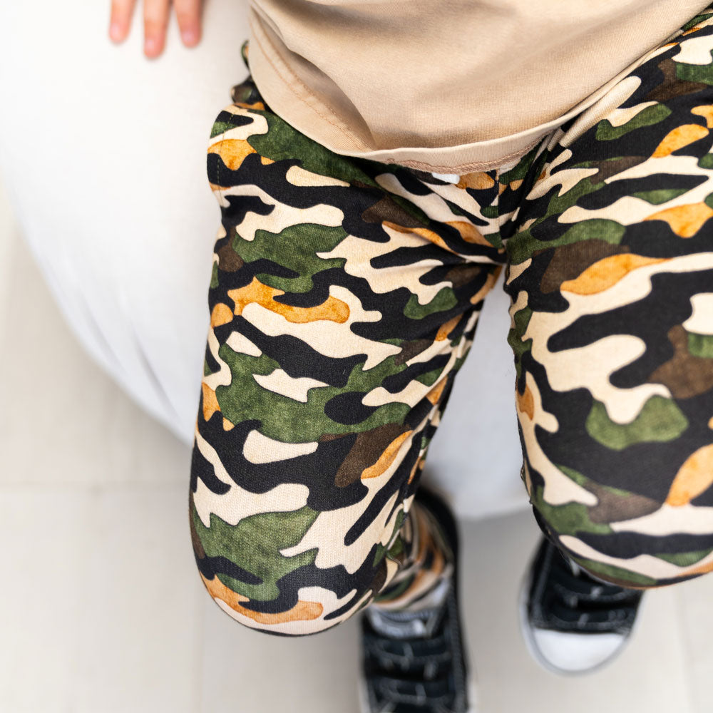 Made for comfort and built for play, these joggers feature a relaxed fit with cuffed ankles, roomy pockets, and a functional drawstring waistband. Crafted from a buttery soft bamboo/cotton blend, they’re breathable, durable, and perfect for everyday adventures.