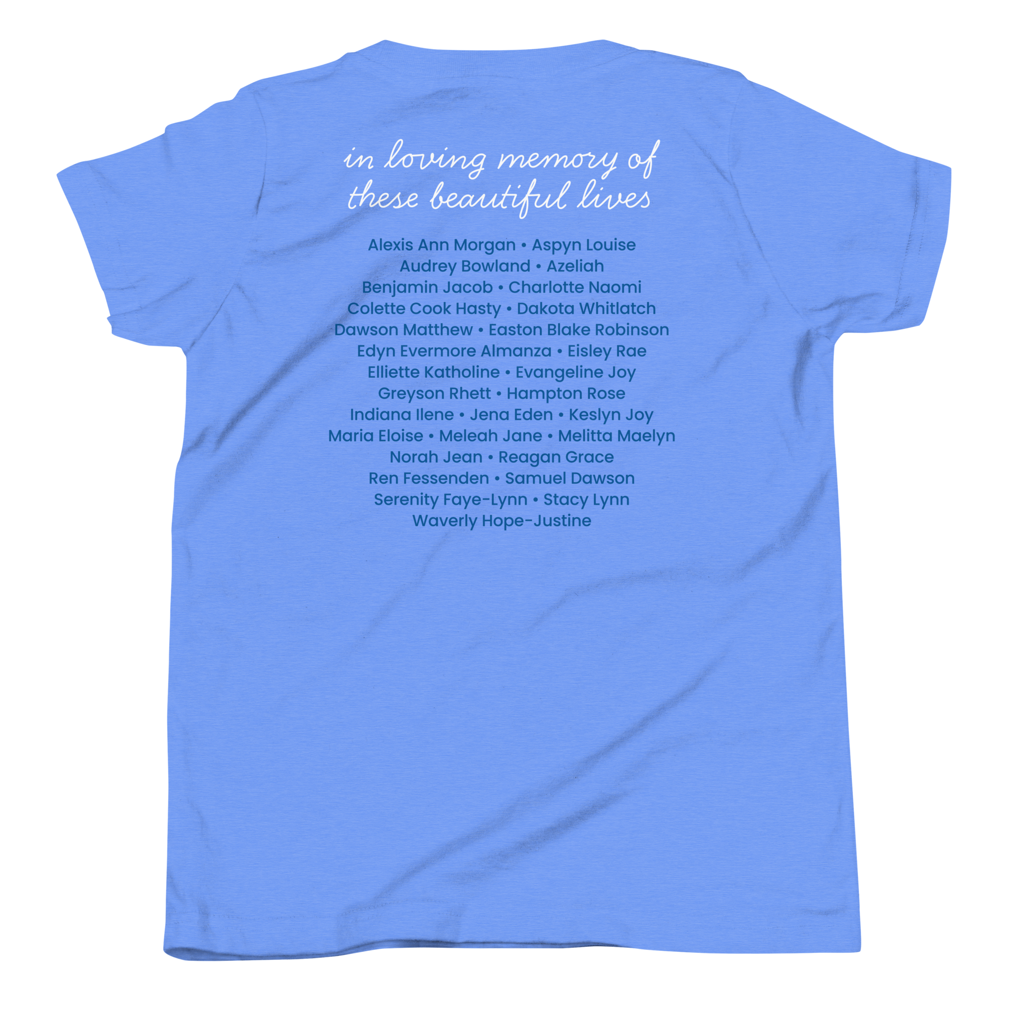 The Angel Tee is part of our awareness collection created to honor the precious little lives who have become angels, no matter their diagnosis or journey. Each shirt is designed to remember, celebrate, and share the stories of children who left a lasting imprint on the hearts of their families and communities.