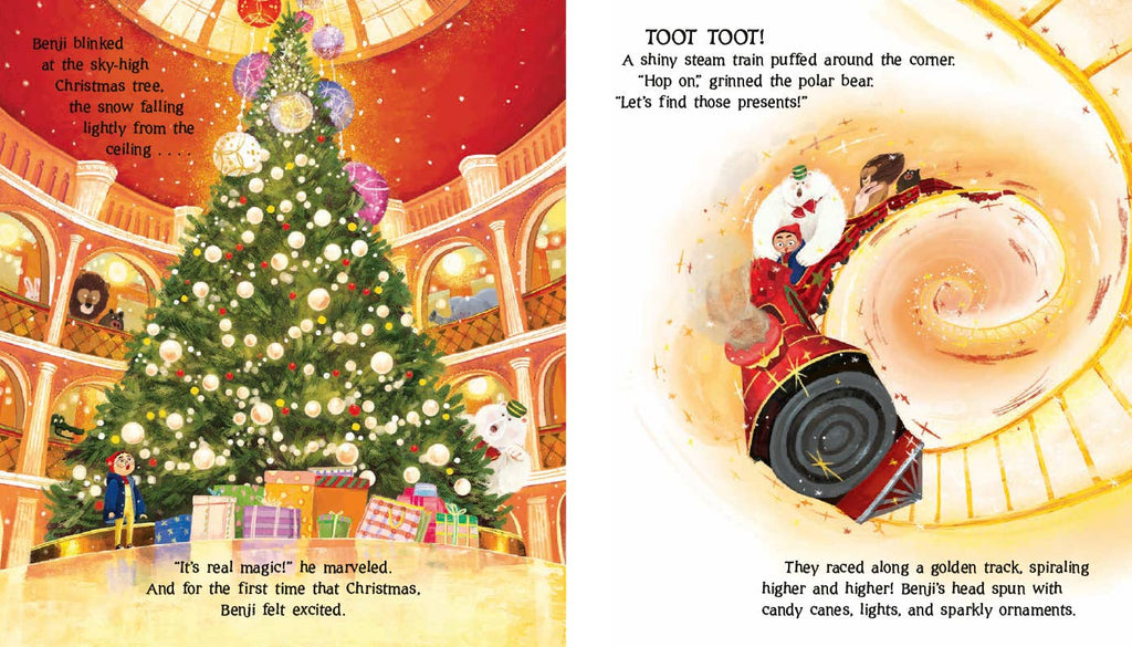 Christmas for Benji this year has lost its magic. He desperately wants to feel the joy of this special season, but his family has very little. He is out walking in the city on Christmas Eve when he stumbles upon a magnificent store. A polar bear invites him in, and Benji visits different rooms that are filled with silly sounds, invisible items that appear using one imagination, and wonderful, inviting smells. Will he be able to find the perfect Christmas gifts for his family?