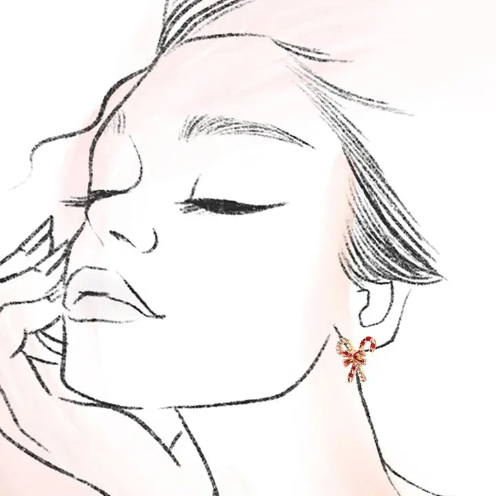 Christmas Candy Cane Pearl Bow Stud Earrings