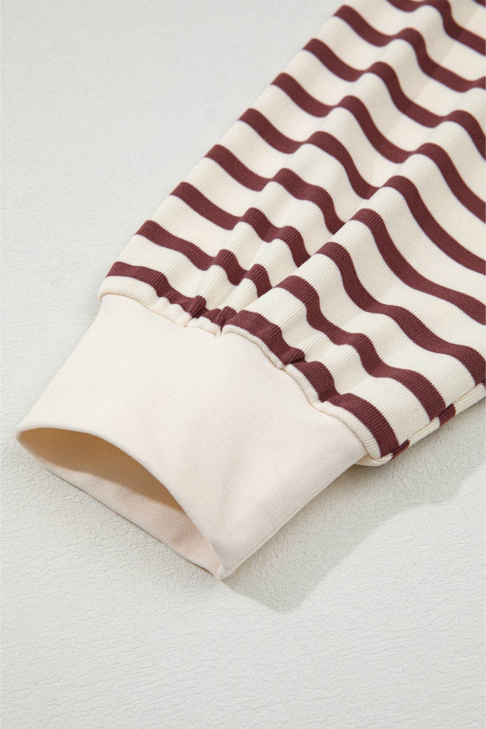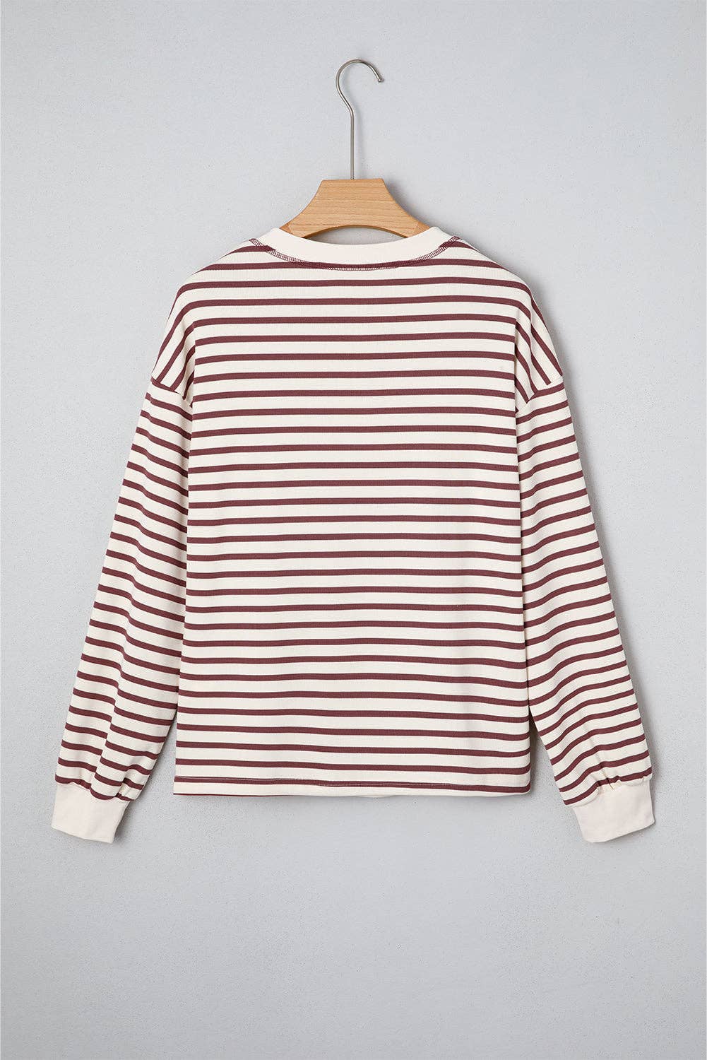 Red Dahlia Striped Print Drop Shoulder Long Sleeve Henley Top