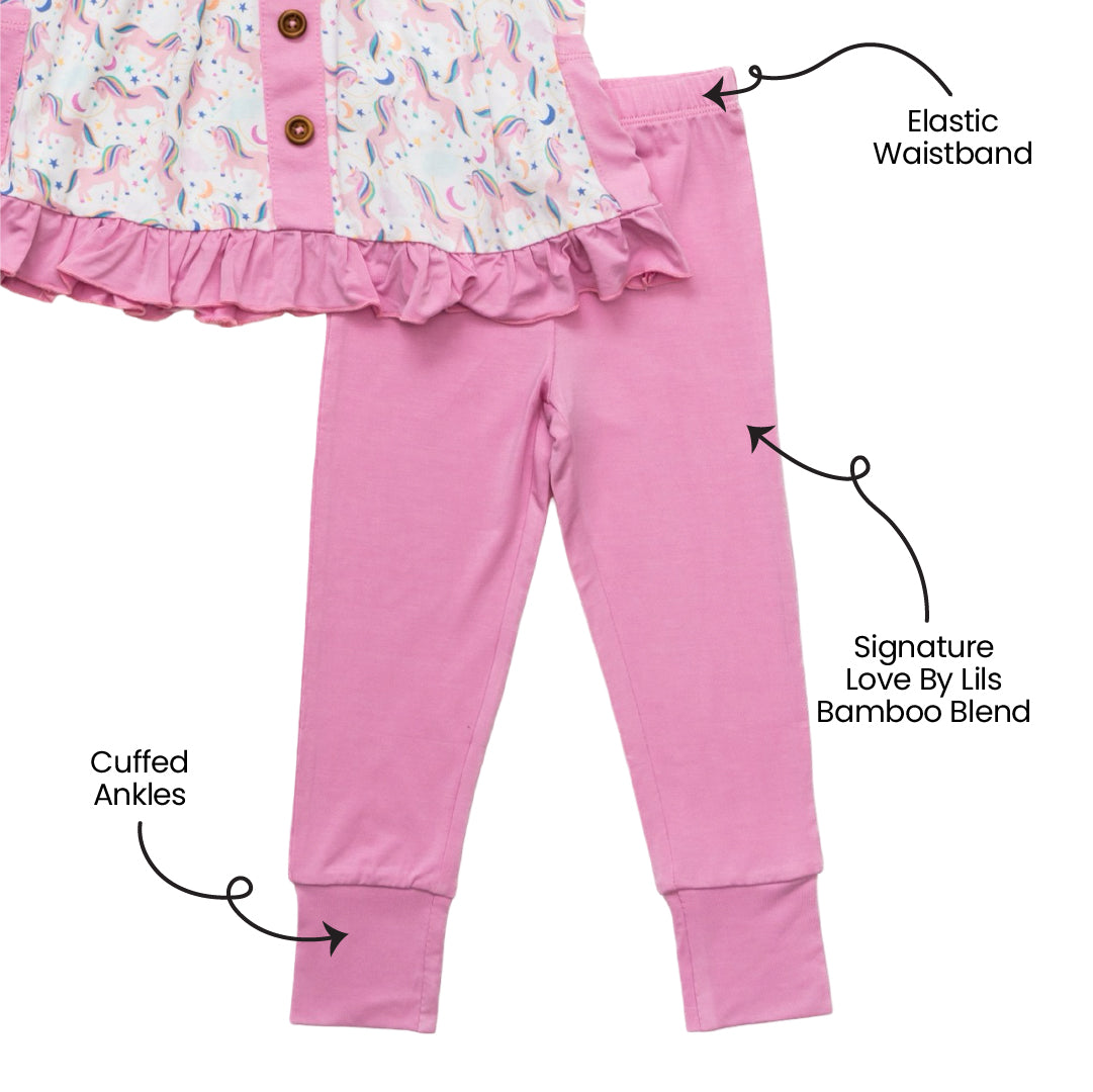 The perfect legging is here! Laree + Co. children's leggings are soft and stylish. Made from our buttery soft Love by Lils bamboo viscose, these leggings are perfect for sensitive and eczema prone skin. Your cutie can enjoy shopping trips, park play dates, and more in bamboo with Laree + Co. daywear!